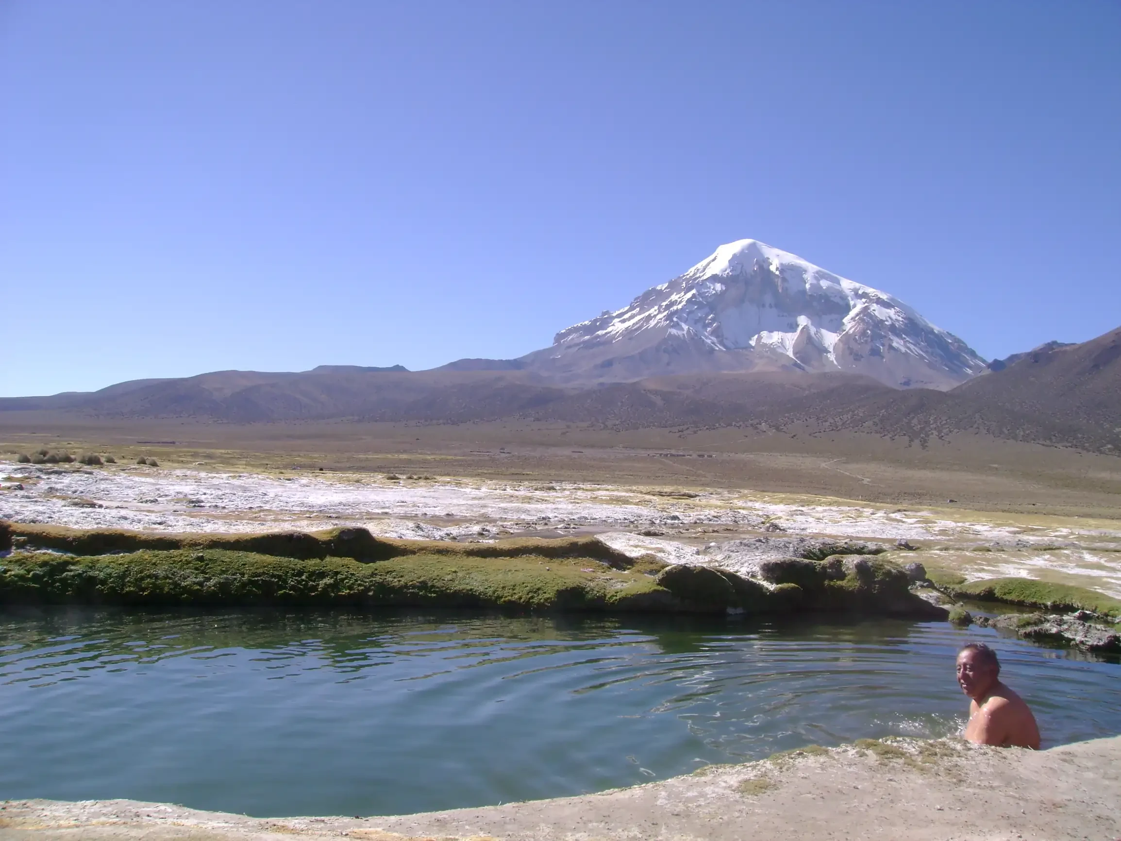 In this park, one can find hot springs, bofedales with their eternal moisture, trees that grow decade by decade (queñua), mosses that are more combustible than petroleum itself (yareta), kollpares, geysers, volcanoes, eternal snows, and the wisdom of a people who have lived there for centuries. Among all that magnificence stands the Nevado Sajama, the father of the entire zone, the "doctor," as traditional healers call him, the tutelary entity of the park, patron saint of Bolivia. His companions of millennia, Pomerape and Parinacota, are his two guardians.
