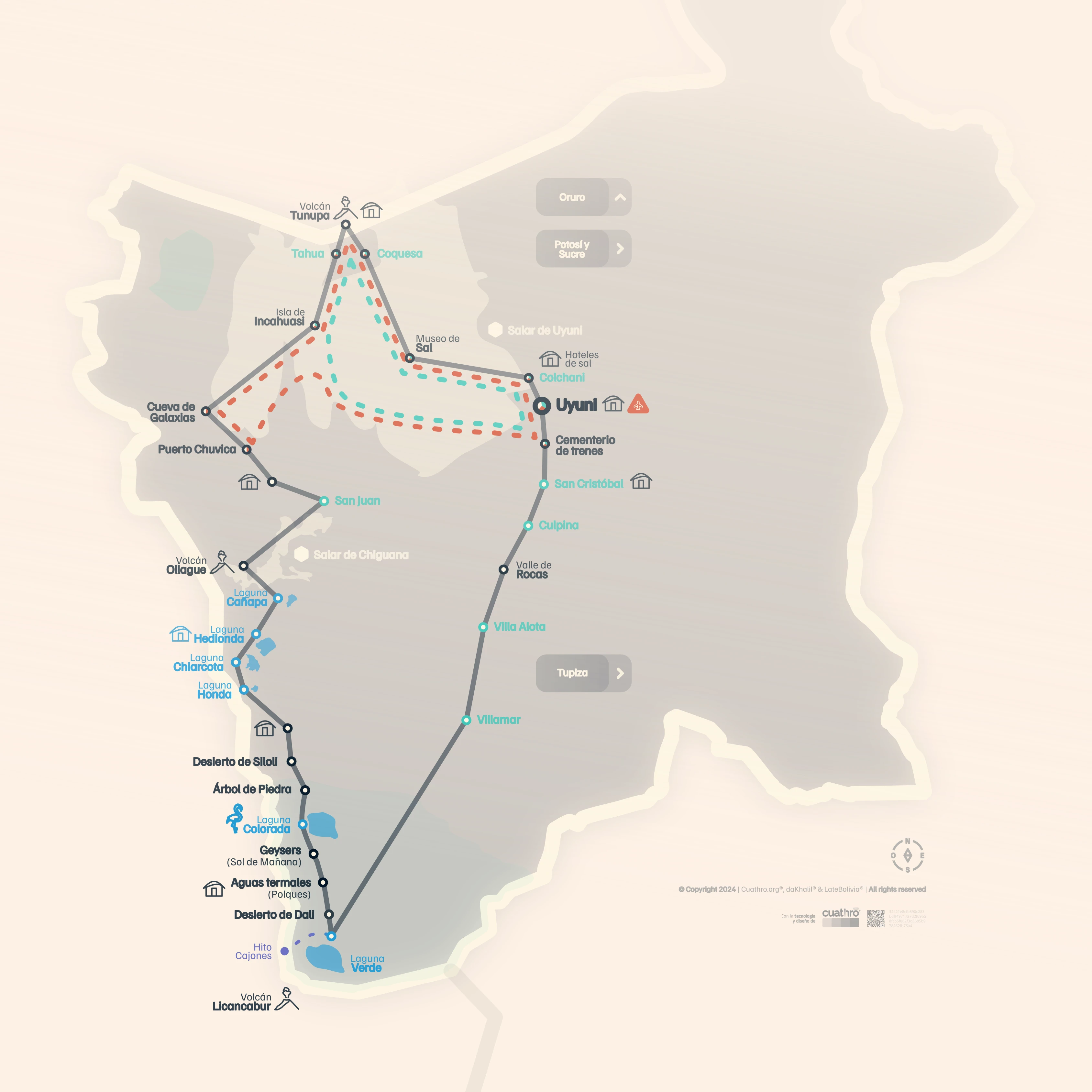 • "Bolivia Trip" is a product of Late Bolivia, designed with the objective of providing a quality, safe service with fixed departures on the Salar de Uyuni and Colored Lagoons circuit.