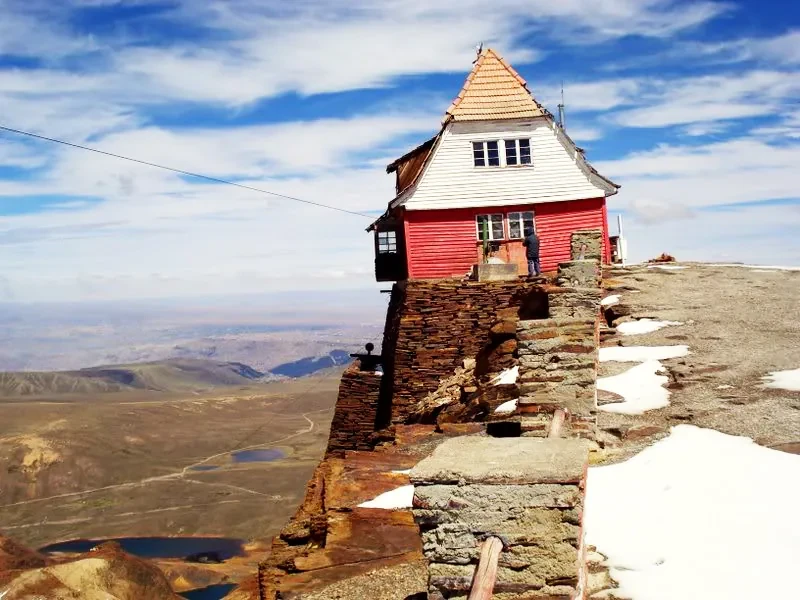 - In La Paz, from the airport, we begin the journey toward Chacaltaya, where you can observe fascinating views of snow-capped peaks and small lagoons formed by melting ice. The path to the base is 200 meters, reached via a road built in the 1930s; we ascend by vehicle to the shelter at Chacaltaya at 5,300 m a.s.l., from where you have a panoramic view of the Real Cordillera of the Bolivian Andes, and a unique panorama that you will never forget.