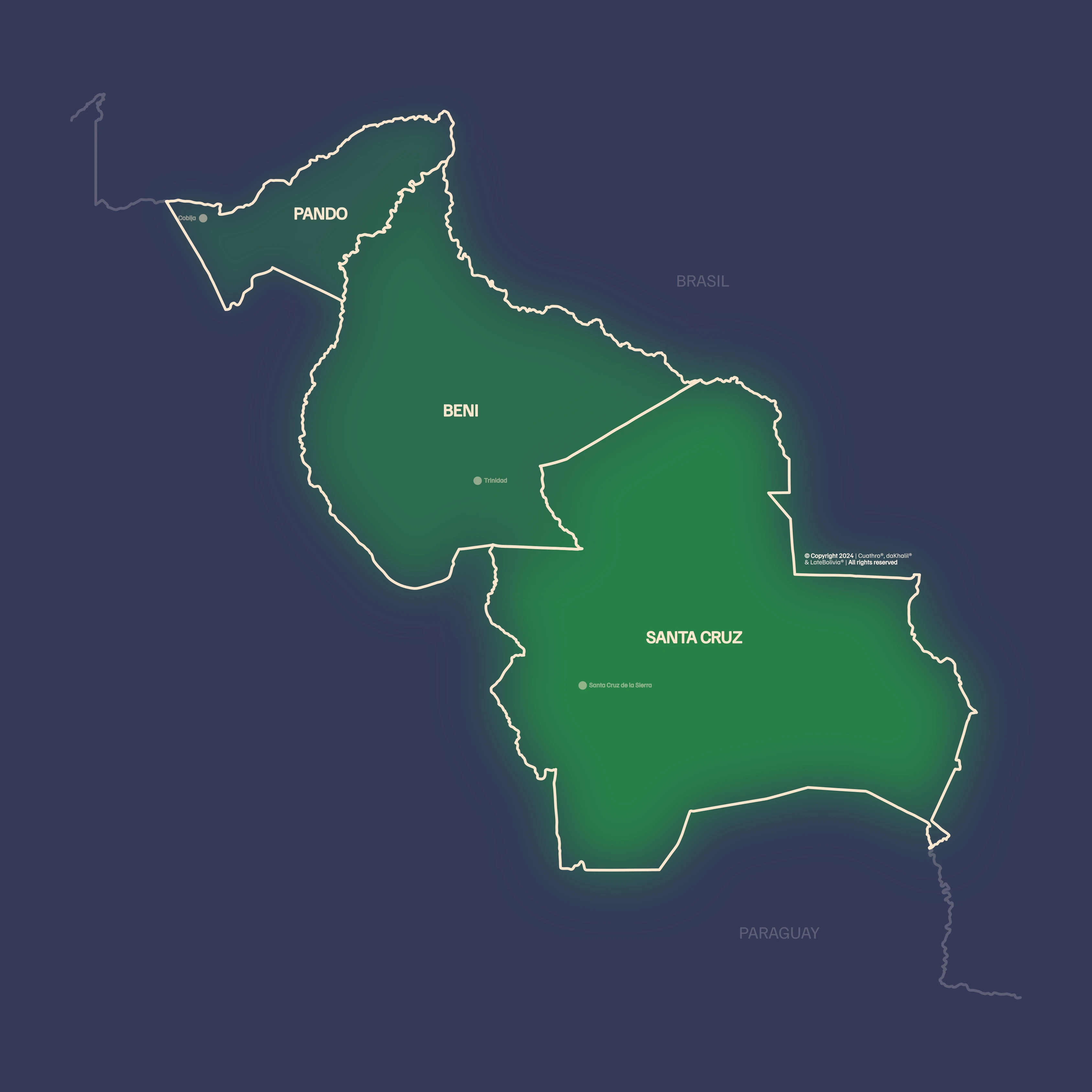 Together, the lowlands of Santa Cruz, Trinidad, and Cobija represent the economic and demographic axis of the Bolivian east, concentrating the majority of the country's population (over 3 million inhabitants) and serving as a gateway for international trade thanks to infrastructure such as the Viru Viru International Airport and the river ports of the Amazon basin.