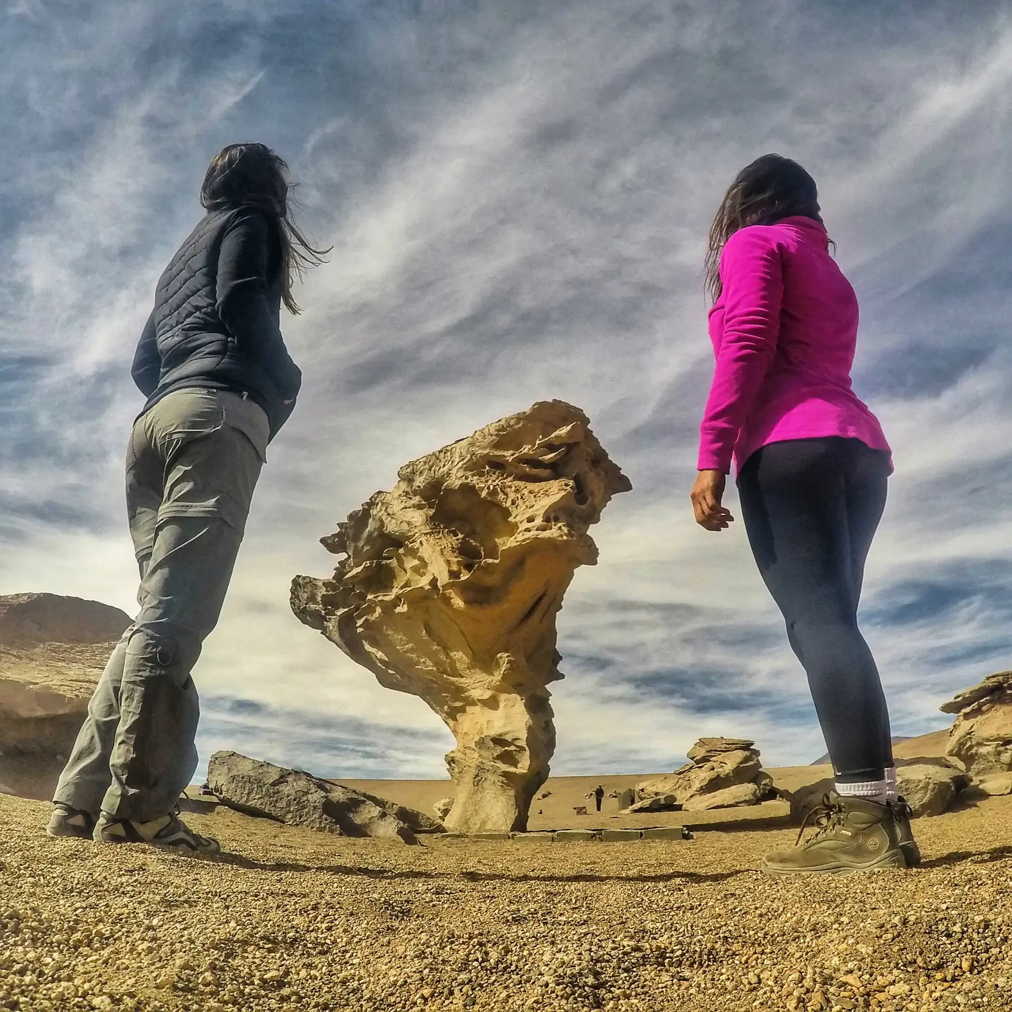 • We depart at approximately 6:30 in the morning; today we will visit the Eduardo Avaroa National Reserve. On the way, we will visit the Stone Tree in the middle of the Siloli Desert, a very particular wind-formed formation.